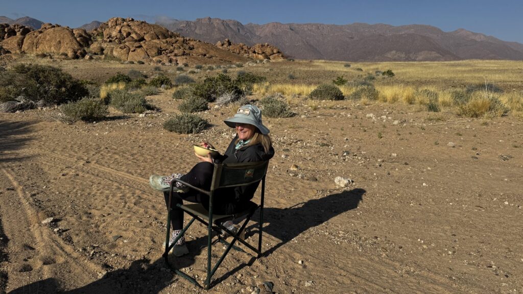 Ellen and her team (Ruben, George, and Steve) absolutely knocked our 6-day experience (4-day hike) out of the park: three delicious meals each day; a freshly set-up shaded camp with a shower and lavatory tent waiting for us daily; and 15km treks through Damaraland’s breathtaking and varied terrains.